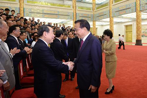 李克強(qiáng)總理會(huì)見謝國(guó)民董事長(zhǎng)等首屆世界華僑華人工商大會(huì)代表
